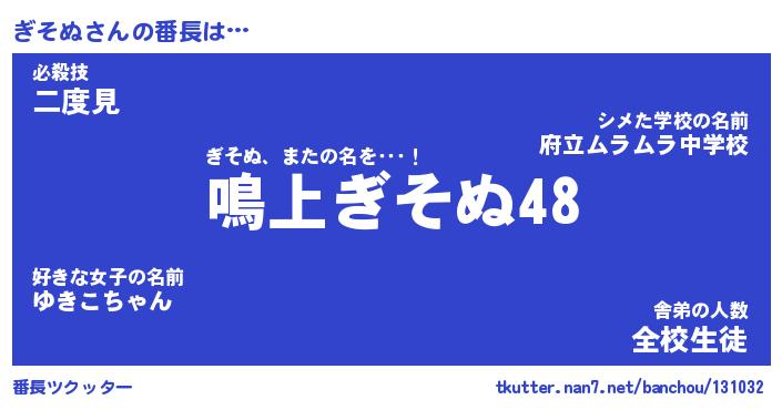 | 2回繰り返すあだ名 | 『ぎそぎそ』『ぎぎそそ』『ぬるぬる』 |