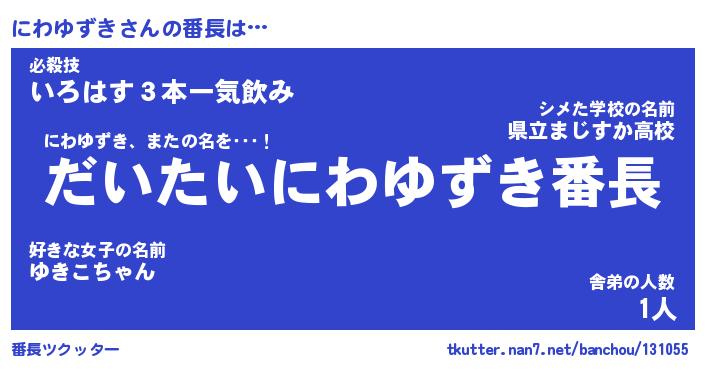 | 男性向けラノベタイトル風あだ名 | 『にわゆずきの憂鬱』 |