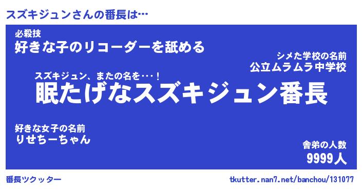 | ヒーロー風カッコイイあだ名 | 『スーパースズキジュン』『天弓騎士スズ』 |