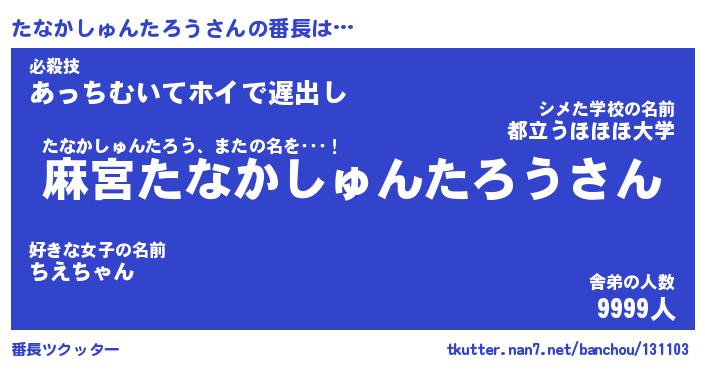 | 欧米人風あだ名 | 『マイケルたなかしゅんたろう』 |