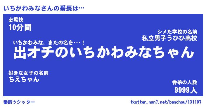 | ヒーロー風カッコイイあだ名 | 『スーパーイチカワミナ』『天弓騎士イチ』 |