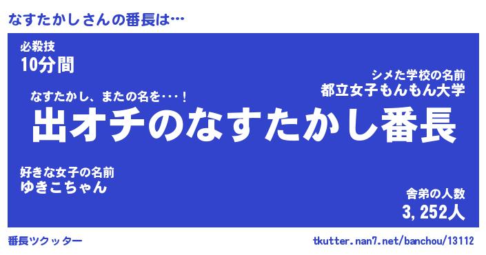 | 2回繰り返すあだ名 | 『なすなす』『ななすす』『ぬめぬめ』 |