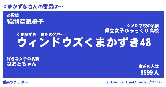 | ヒーロー風カッコイイあだ名 | 『スーパークマカズキ』『暗黒騎士クマ』 |