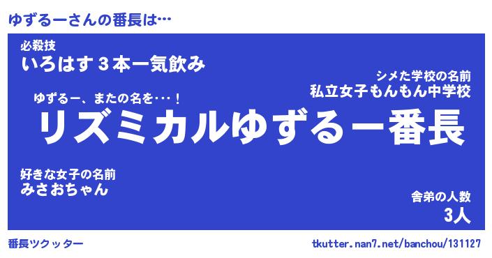| ヒーロー風カッコイイあだ名 | 『スーパーユズルー』『魔戒騎士ユズ』 |