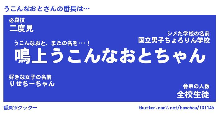 | 男性向けラノベタイトル風あだ名 | 『ウコンナオトアートオンライン』 |