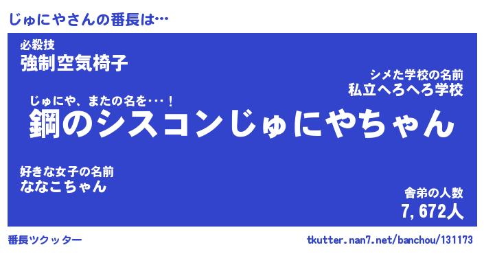 | 伝説のあだ名 | 『封印されしスナイパーじゅにや』 |