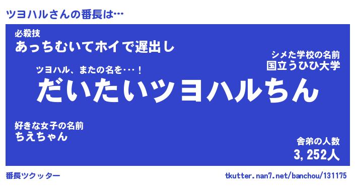 | 2回繰り返すあだ名 | 『ツヨツヨ』『ツツヨヨ』『からから』 |