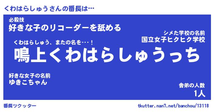 | ヘコむあだ名 | 『くわもー』『つくし』『くわぷりん』 |