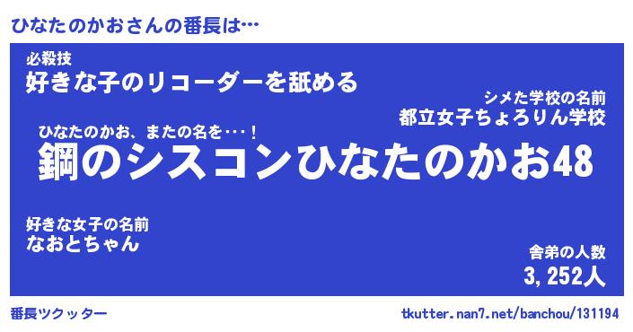 | 肩書あだ名 | 『ひなたのかお社長』『ひなたのかお班長』 |