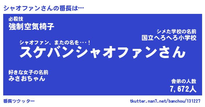 | ヘコむあだ名 | 『シャもー』『つくし』『シャお』 |
