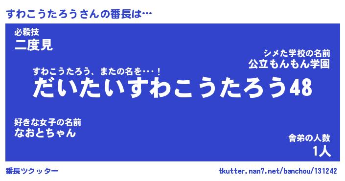| ヒーロー風カッコイイあだ名 | 『スーパースワコウタロウ』 |
