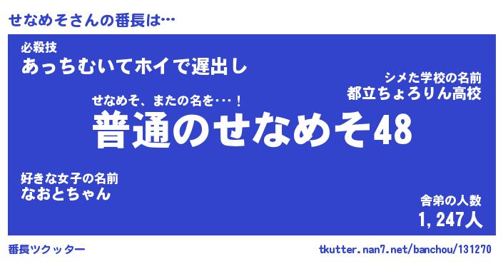 | ヘコむあだ名 | 『せなにゅー』『つくし』『せなっぺ』 |