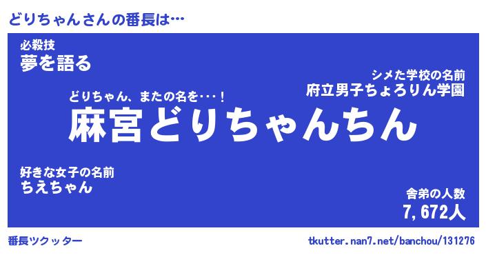 | 肩書あだ名 | 『どりちゃん御曹司』『どりちゃん大統領』 |