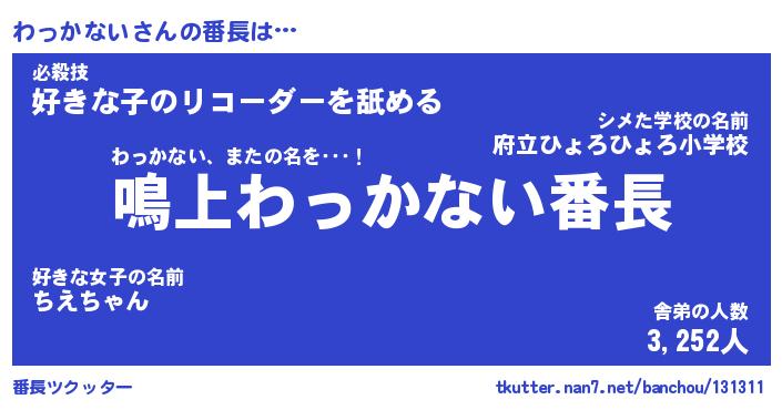 | 2回繰り返すあだ名 | 『わっわっ』『わわっっ』『ぬめぬめ』 |