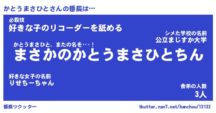| 肩書あだ名 | 『かとうまさひと御曹司』 |