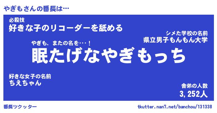 | 肩書あだ名 | 『やぎも店長』『やぎも国家主席』 |