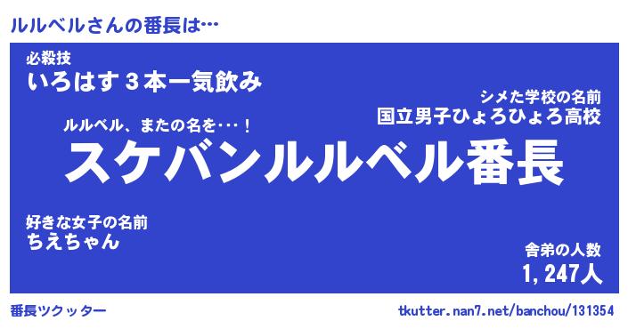 | ヒーロー風カッコイイあだ名 | 『スーパールルベル』『銀牙騎士ルル』 |