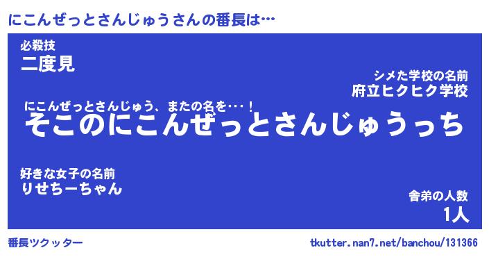 | 2回繰り返すあだ名 | 『にこにこ』『ににここ』『ぬれぬれ』 |