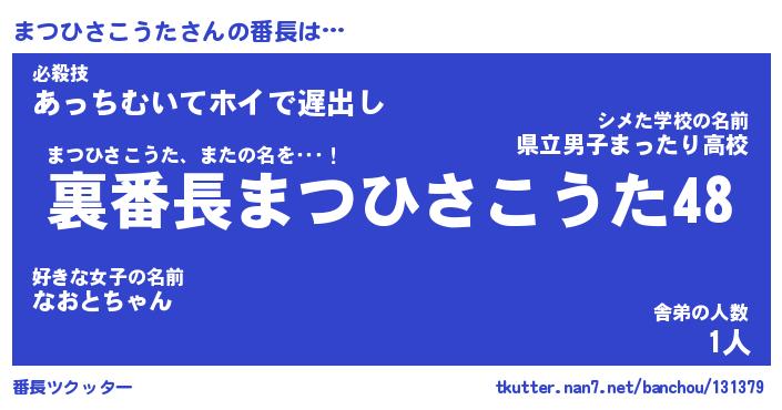 | 伝説のあだ名 | 『不死鳥のスナイパーまつひさこうた』 |