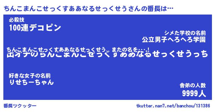 | ヒーロー風カッコイイあだ名 | 『スーパーチンコマンコセックスアアナルセックセウ』 |