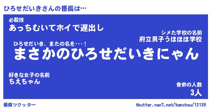 | ヒーロー風カッコイイあだ名 | 『スーパーヒロセダイキ』『天弓騎士ヒロ』 |