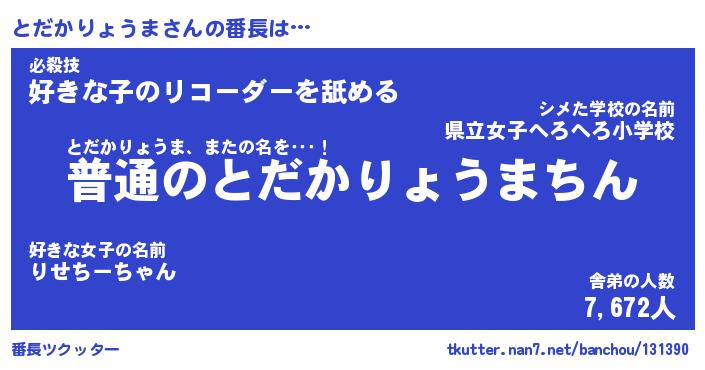 | 意味不明あだ名 | 『ペロリンとだかりょうま』 |