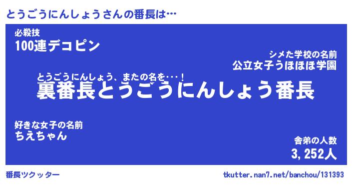 | ピコ太郎風あだ名 | 『トコ三郎』『ピト太郎』『トウ六郎』 |