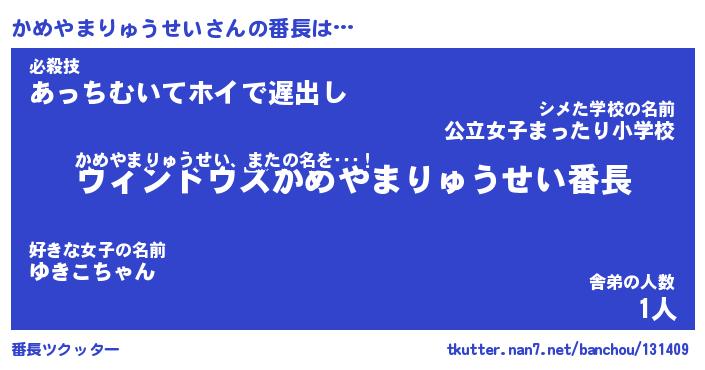 | 肩書あだ名 | 『かめやまりゅうせい御曹司』 |