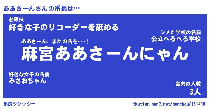 | 2回繰り返すあだ名 | 『ああああ』『ああああ』『おらおら』 |