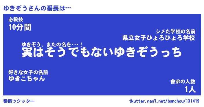 | ヒーロー風カッコイイあだ名 | 『スーパーユキゾウ』『銀牙騎士ユキ』 |