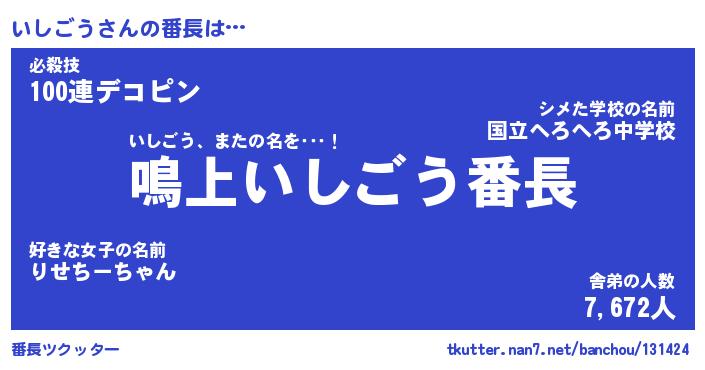 | ピコ太郎風あだ名 | 『イコ太郎』『ピイ三郎』『イシ太郎』 |