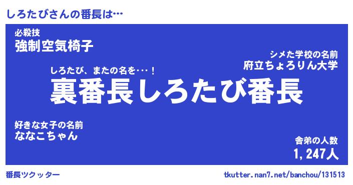 | 2回繰り返すあだ名 | 『しろしろ』『ししろろ』『ぎょぎょ』 |