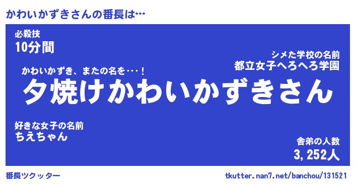 | 恥ずかしいあだ名 | 『プリティーかわいかずき』『かわっちょ』 |