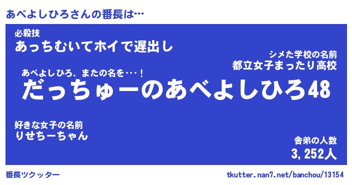 | ヒーロー風カッコイイあだ名 | 『スーパーアベヨシヒロ』『天弓騎士アベ』 |