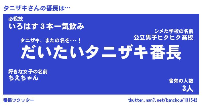 | ファンタジー風あだ名 | 『タニフェル』『エターナルタニザキー』 |