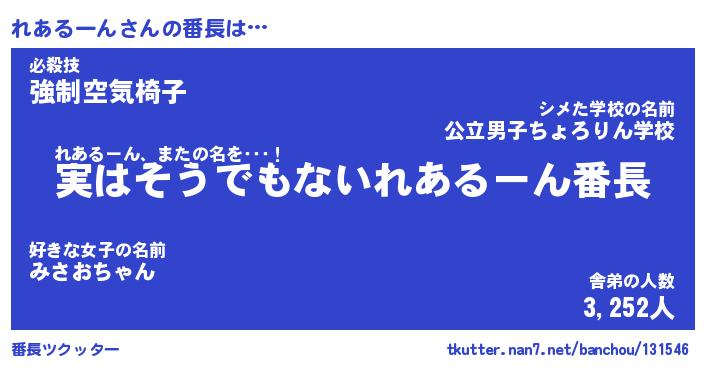| 2回繰り返すあだ名 | 『れあれあ』『れれああ』『おらおら』 |