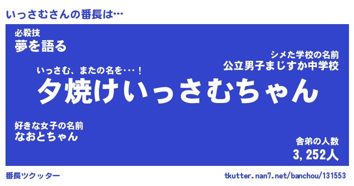 | 意味不明あだ名 | 『ペロリンいっさむ』『永久保存いっさむ』 |