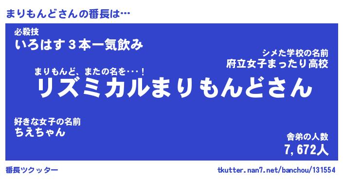 | 伝説のあだ名 | 『伝説のスナイパーまりもんど』 |