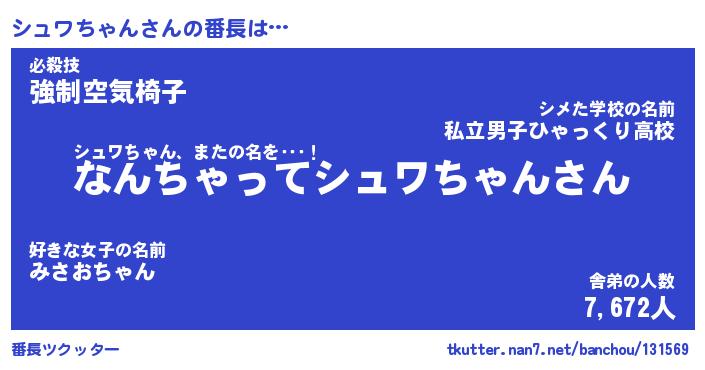| ヒーロー風カッコイイあだ名 | 『スーパーシュワチャン』『炎刃騎士シュ』 |