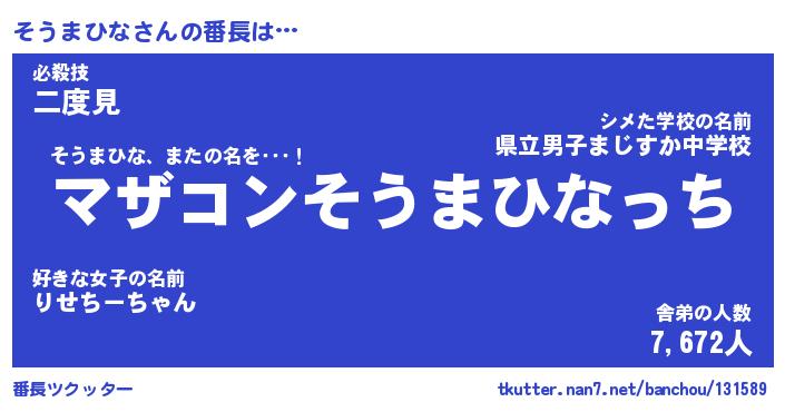 | 伝説のあだ名 | 『封印されしスナイパーそうまひな』 |