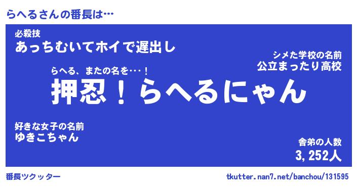 | ファンタジー風あだ名 | 『ラヘフェル』『エターナルラヘルー』 |