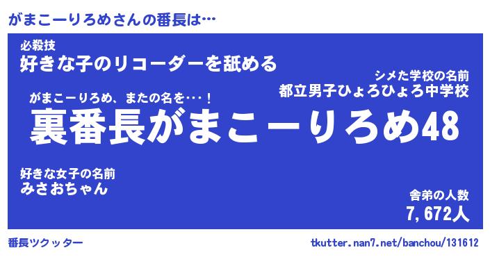 | ヘコむあだ名 | 『がまにー』『なまこ酢』『がまを』 |