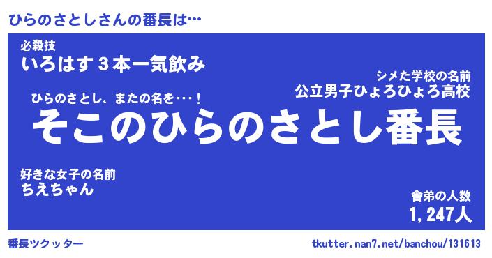 | ピコ太郎風あだ名 | 『ヒコ四郎』『ピヒ三郎』『ヒラ二郎』 |