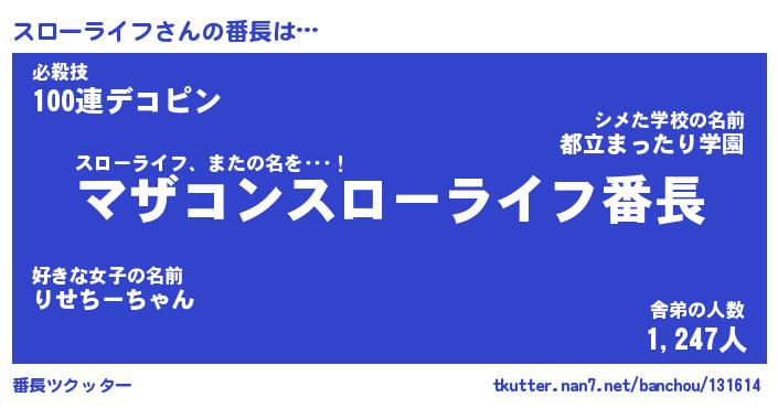 | 肩書あだ名 | 『スローライフ社長』『スローライフ班長』 |