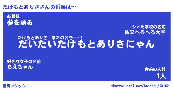 | 肩書あだ名 | 『たけもとありさ御曹司』 |