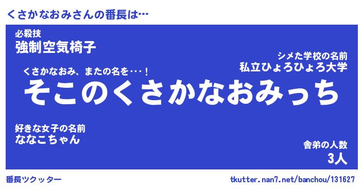 | ヒーロー風カッコイイあだ名 | 『スーパークサカナオミ』『暗黒騎士クサ』 |
