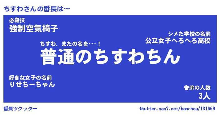 | 肩書あだ名 | 『ちすわCEO』『ちすわ総理大臣』 |