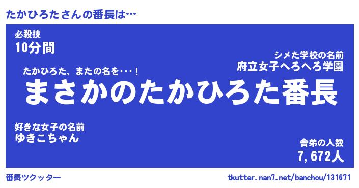 | 肩書あだ名 | 『たかひろた店長』『たかひろた総理大臣』 |