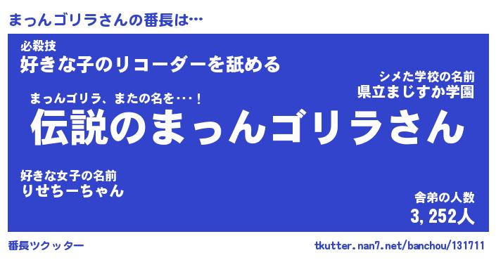 | 伝説のあだ名 | 『伝説の竜騎士まっんゴリラ』 |