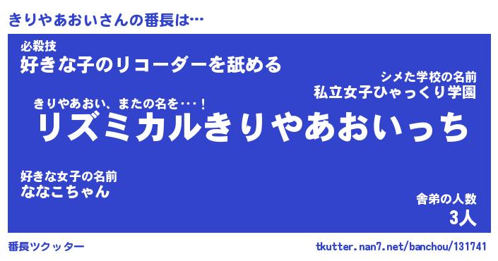 | 肩書あだ名 | 『きりやあおい店長』『きりやあおい教頭』 |
